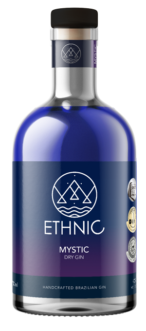 Nasceu então o Gin Ethnic Mystic, um Dry Gin botânico e super aromático, com um sabor leve, porém marcante. Suas notas olfativas florais, herbais e citricas trazem um aroma delicioso e da mesma forma, suas notas gustativas, herbais e cítricas trazem um sabor único. Sua coloração é naturalmente azul e ao ser adicionado tônica, ele muda de cor para o lilás, uma verdadeira alquimia.